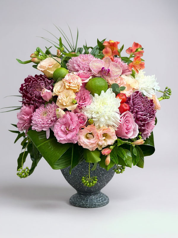 Seramik vazo içerisinde pembe anastasia çiçekleri, mor anastasia çiçeği , beyaz anastasia, astomerya çiçeği, pembe lisyantus çiçekleri ve diğer biçme çiçekler ile hazırlanır canlı çiçekler mevsimsel olarak farklılık gösterebilir tasarım bütünlüğü bozulmadan hazırlanır aynı gün adrese teslim edilir.